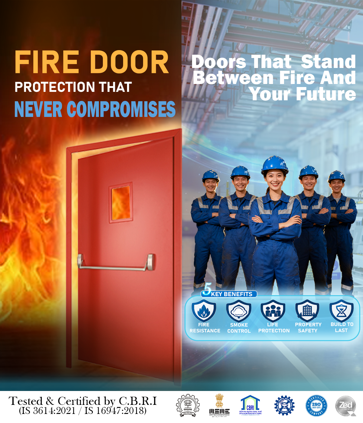 Our services cover fire-rated doors, shutters, steel frames. Backed by a 50,000 sq.ft. facility in Baghpat, Uttar Pradesh. As a proud Make in India company, we are committed to protecting lives and property through high-quality, user-friendly technologies and end-to-end fire safety services.